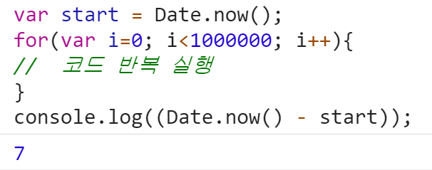 아무런 코드도 실행하지 않고 단순 반복만 수행하여서 7 밀리세컨드가 소요되었습니다. 그러나 time 메서드를 사용하면 굳이 Date 객체를 사용하고 연산할 필요가 없습니다.