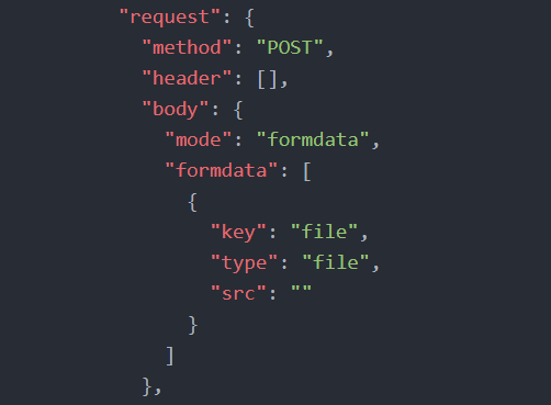 Export된 JSON파일을 열어 파일 업로드 요청 부분을 살펴보면 아래와 같습니다.
