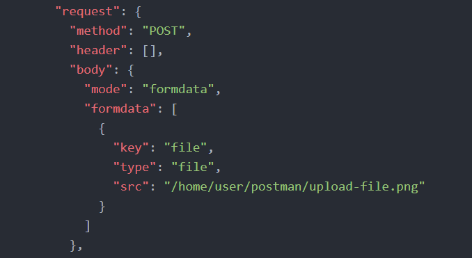 Newman은 파일 업로드 역시 지원합니다. 컬렉션의 요청 중 form-data로 파일을 가지고 있는 요청이 있다면, 동일하게 동작이 가능합니다. 단, Export 된 JSON파일에 수동으로 파일 경로에 대한 정보를 기재해 주어야 합니다.