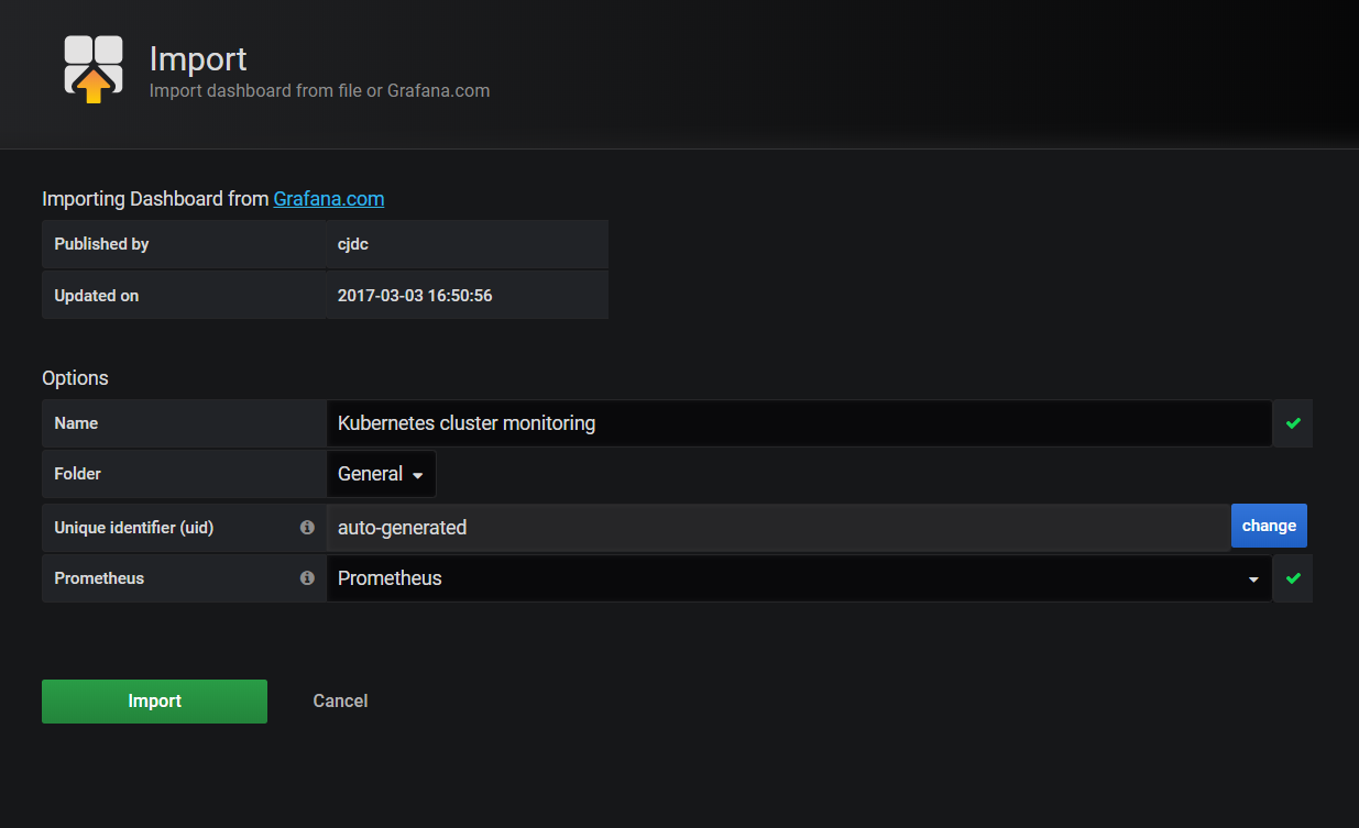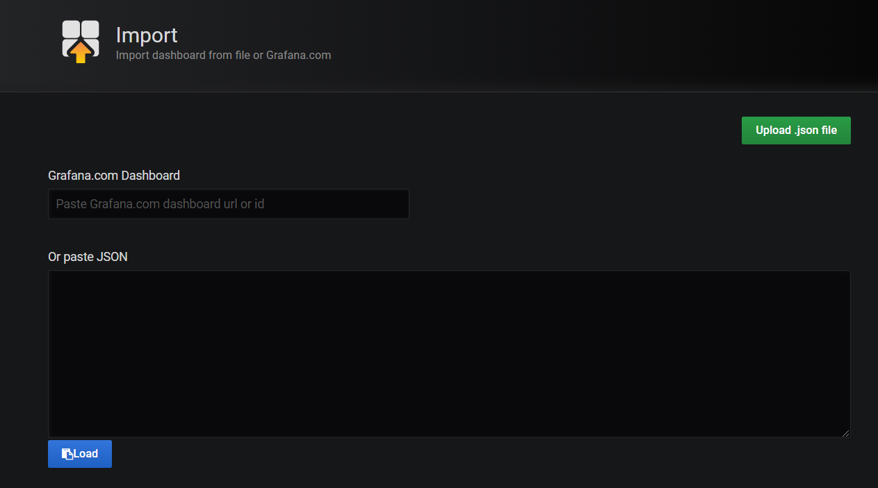 이제 Grafana.com에 등록되어 있는 대시보드 템플릿 번호로 대시보드를 생성할 것입니다. 번호를 기재하게 되면 아래와 같이 화면이 변경됩니다.