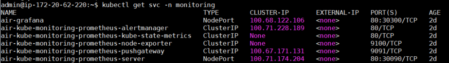 kubectl get svc -n {네임스페이스명}