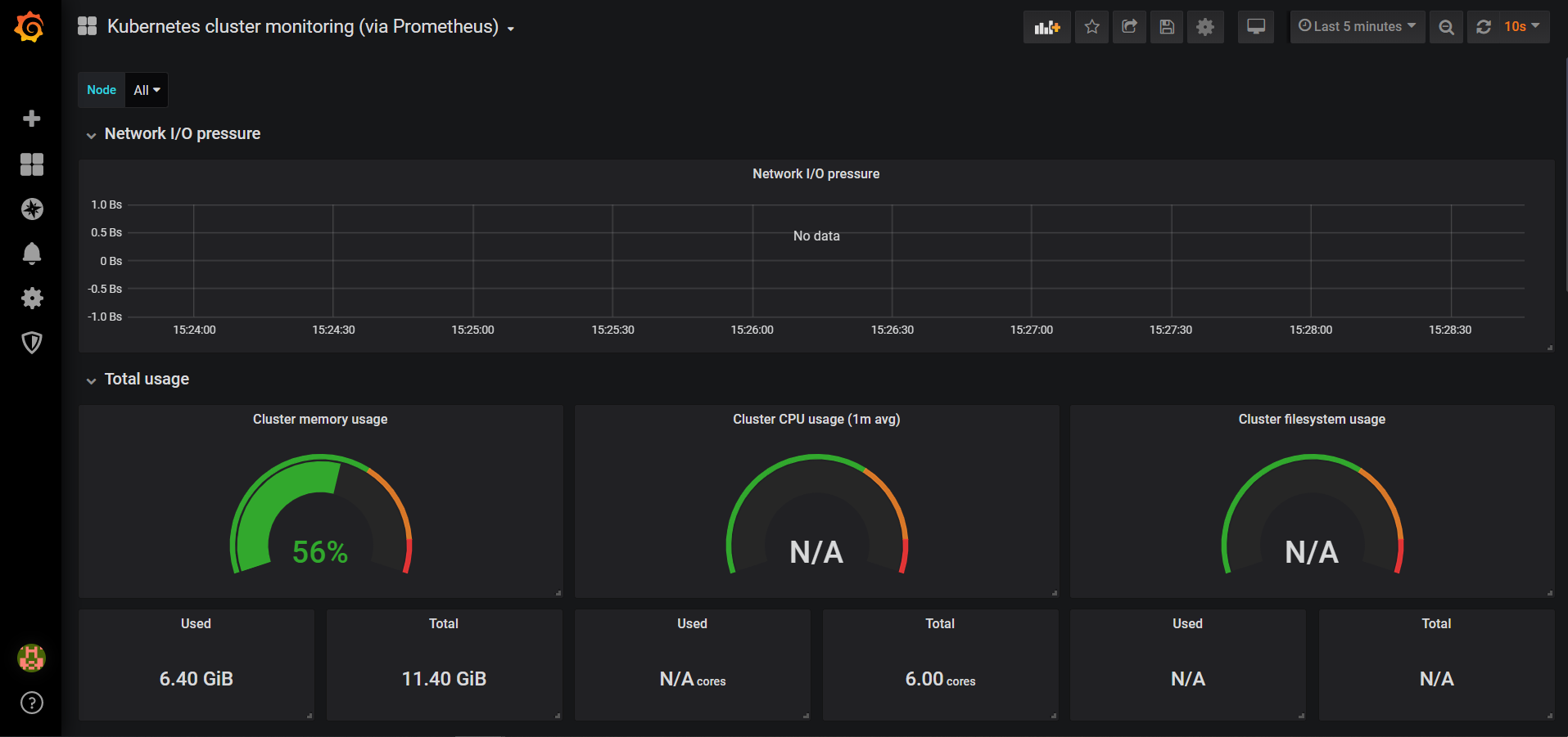 import를 마치면 아래와 같이 쿠버네티스에 대한 전반적인 모니터링 정보가 출력됩니다.