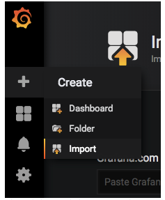 대시보드를 생성하려면 Create > import를 선택합니다.